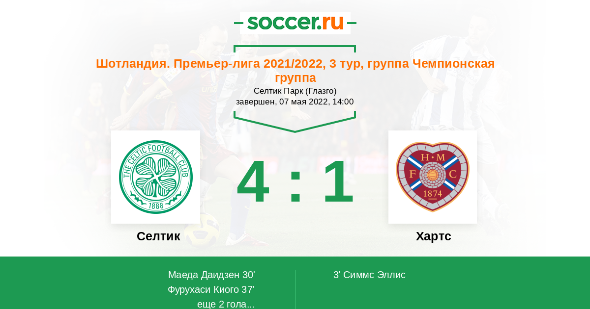 Протокол матча Селтик против Хартс