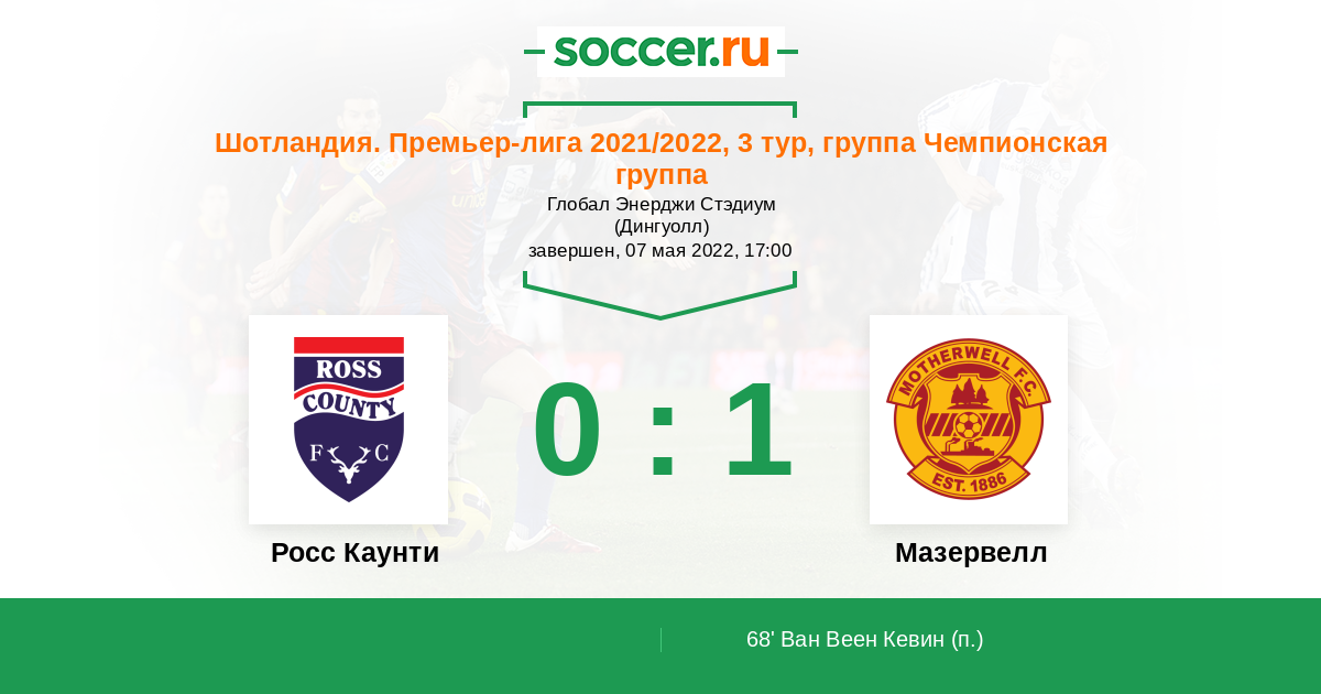 Протокол матча Росс Каунти против Мазервелл