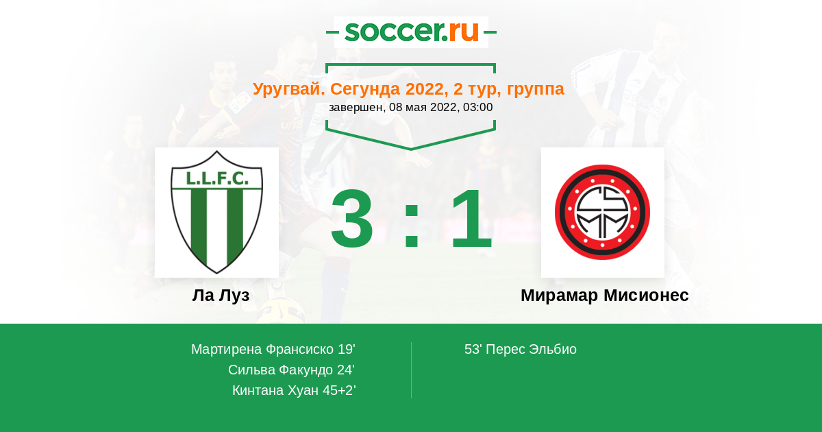Протокол матча Ла Луз против Мирамар Мисионес