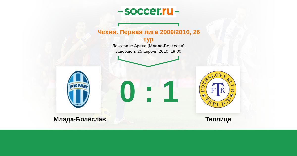 Чехия. Первая Лига 09.04.2011 Теплице Логотип футбольный клуб Теплице 1:2 Логотип футбольный клуб Млада-Болеслав Млада-Болеслав