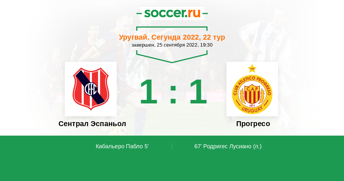 Протокол матча Сентрал Эспаньол против Прогресо