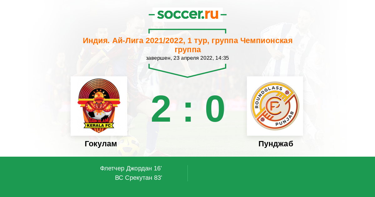 Протокол матча Гокулам против Пунджаб