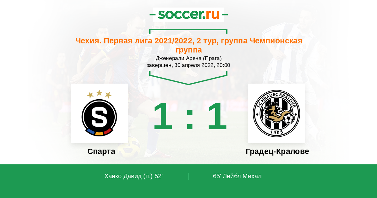 Протокол матча Спарта против Градец-Кралове