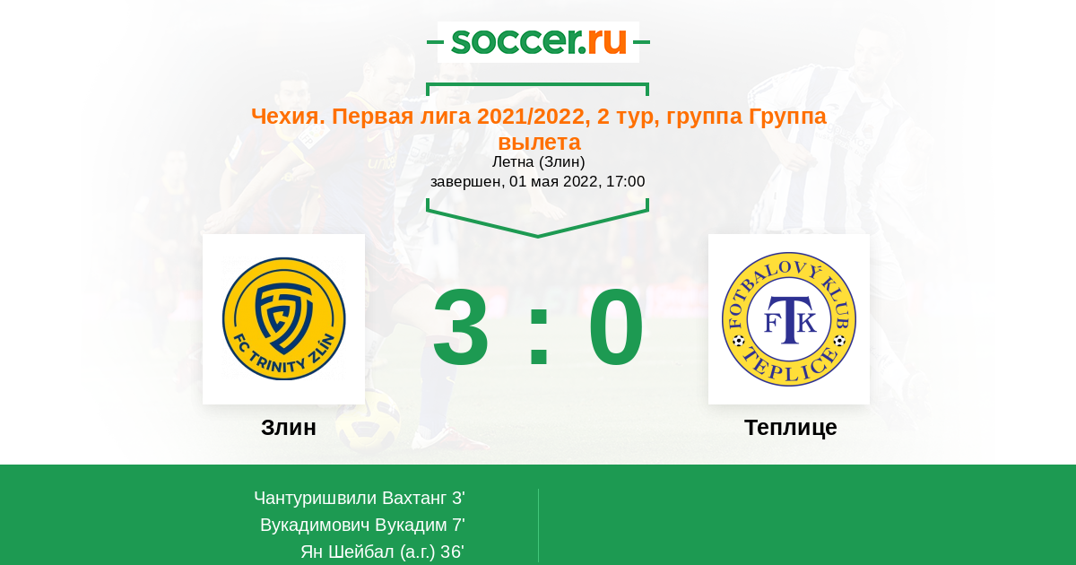 Протокол матча Злин против Теплице