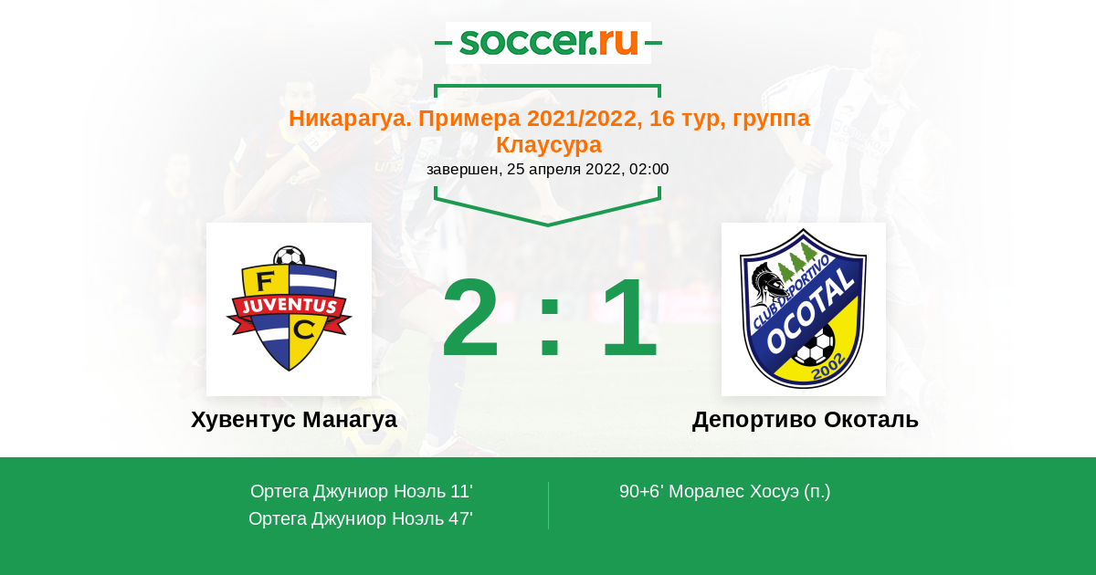 Протокол матча Хувентус Манагуа против Депортиво Окоталь