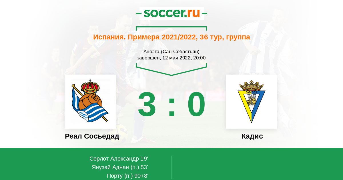 «Реал Сосьедад» не дал шансов «Кадису» в трех последних матчах Примеры, одержав во всех случаях сухие победы. «Кадис» неплохо себя показал в последних турах, но у него всего лишь одна победа в 6 выездных матчах.