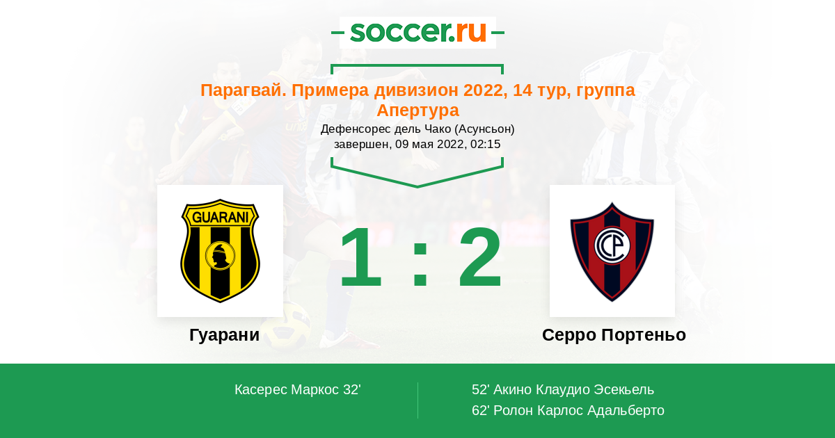 Протокол матча Гуарани против Серро Портеньо