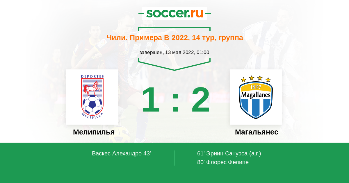 Протокол матча Мелипилья против Магальянес