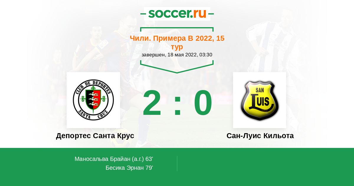 Протокол матча Депортес Санта Крус против Сан-Луис Кильота