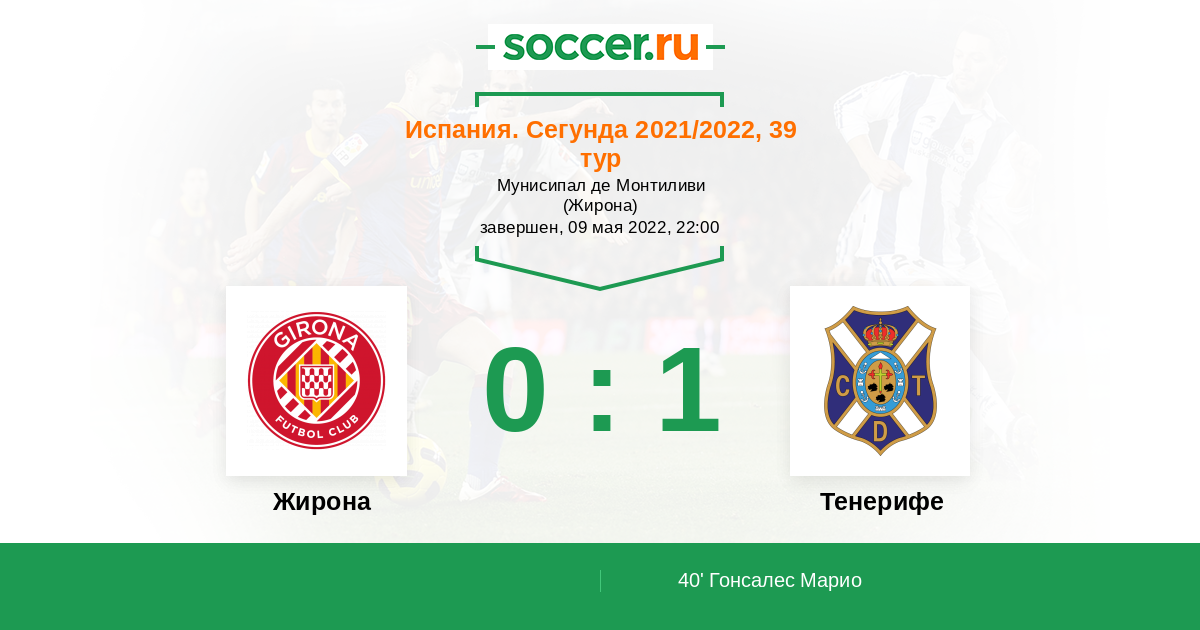 Протокол матча Жирона против Тенерифе