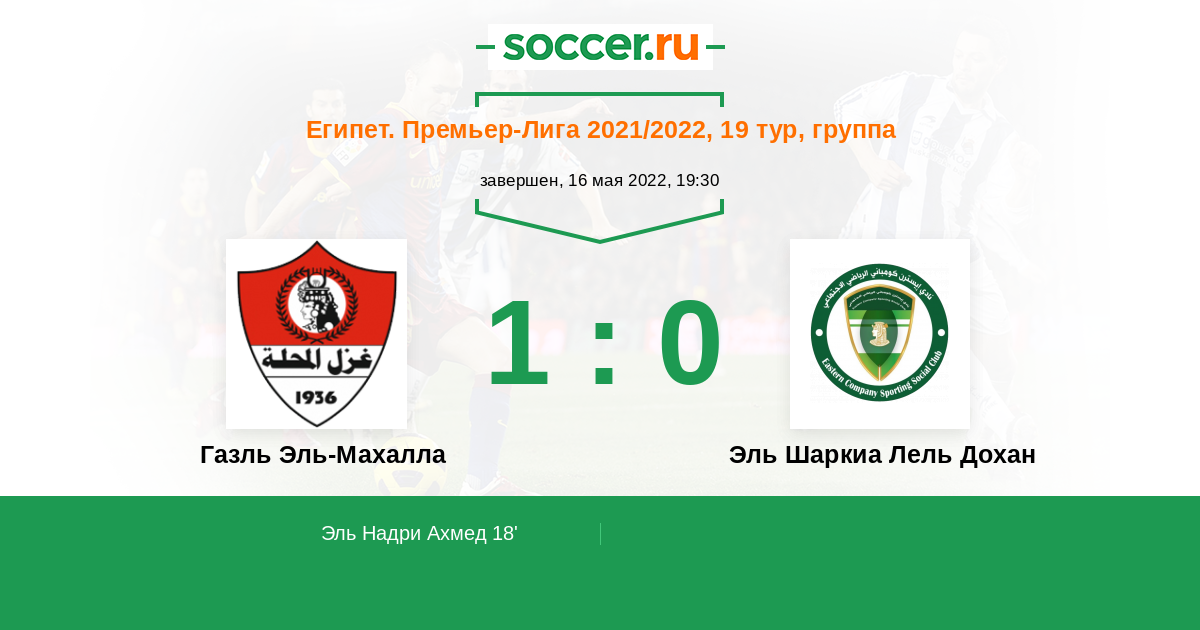 Протокол матча Газль Эль-Махалла против Эль Шаркиа Лель Дохан
