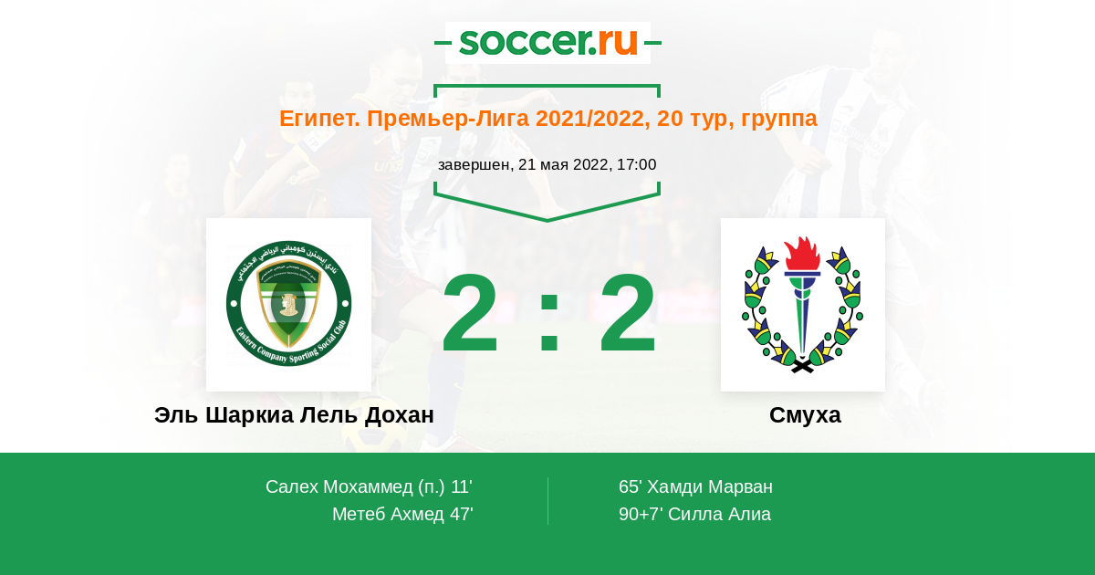 Протокол матча Эль Шаркиа Лель Дохан против Смуха