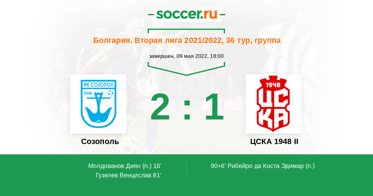 Протокол матча Созополь против ЦСКА 1948 II