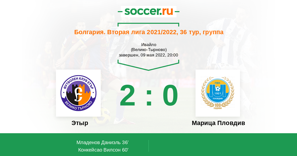 Протокол матча Этыр против Марица Пловдив