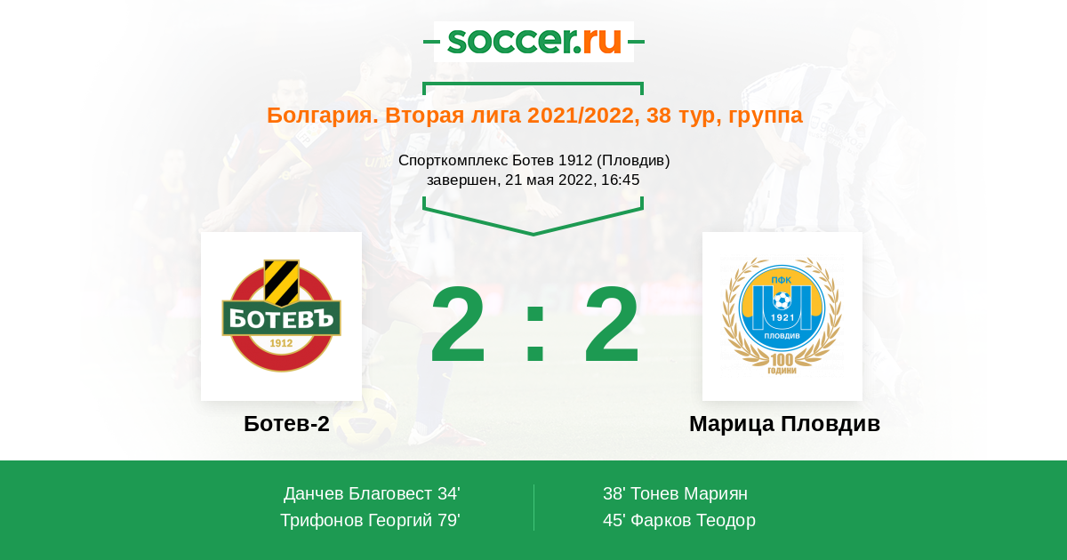 Протокол матча Ботев-2 против Марица Пловдив