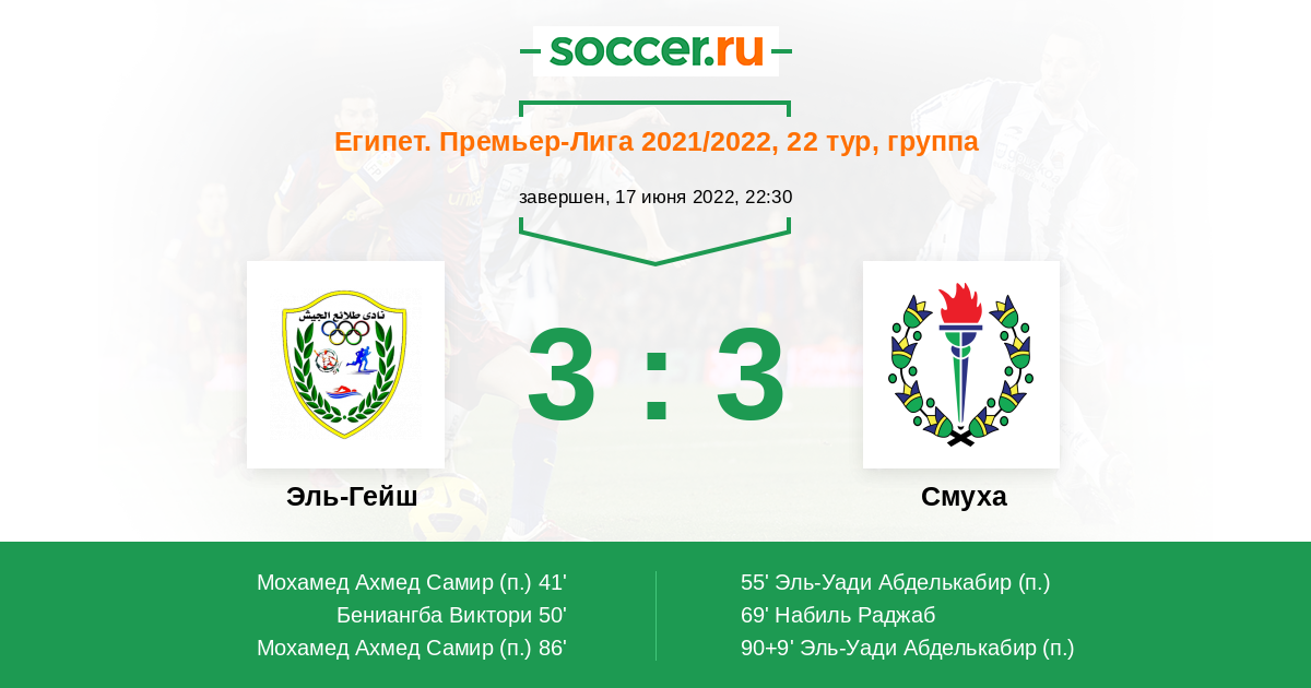 Протокол матча Эль-Гейш против Смуха