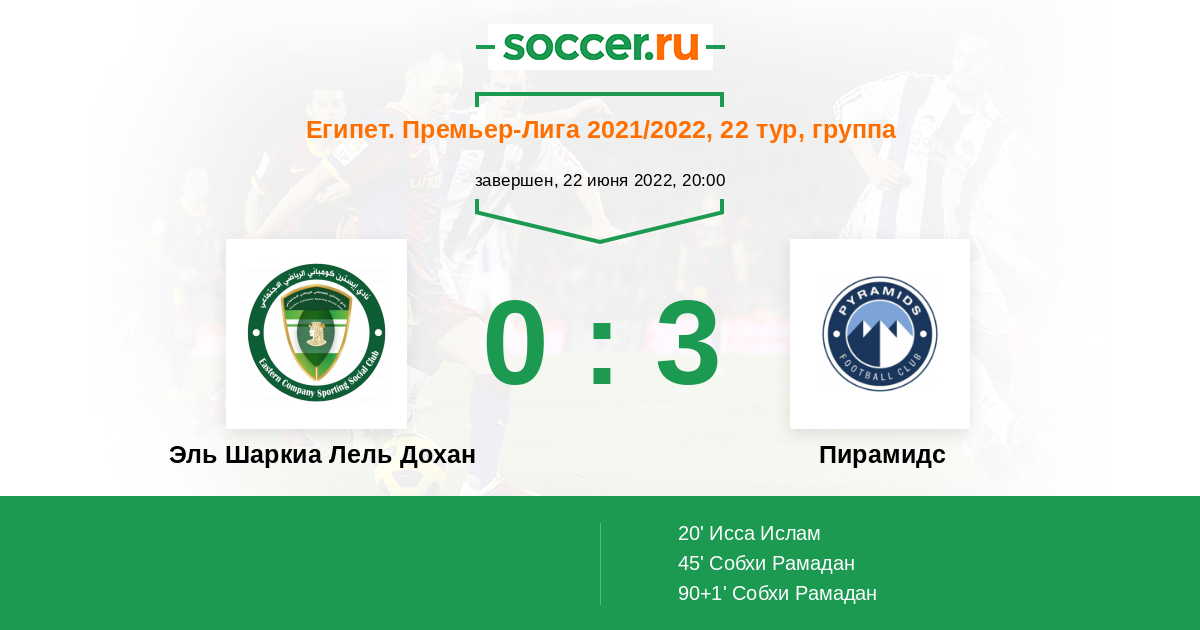 Протокол матча Эль Шаркиа Лель Дохан против Пирамидс