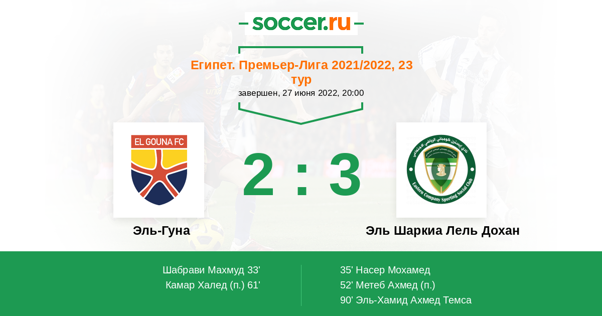 Протокол матча Эль-Гуна против Эль Шаркиа Лель Дохан