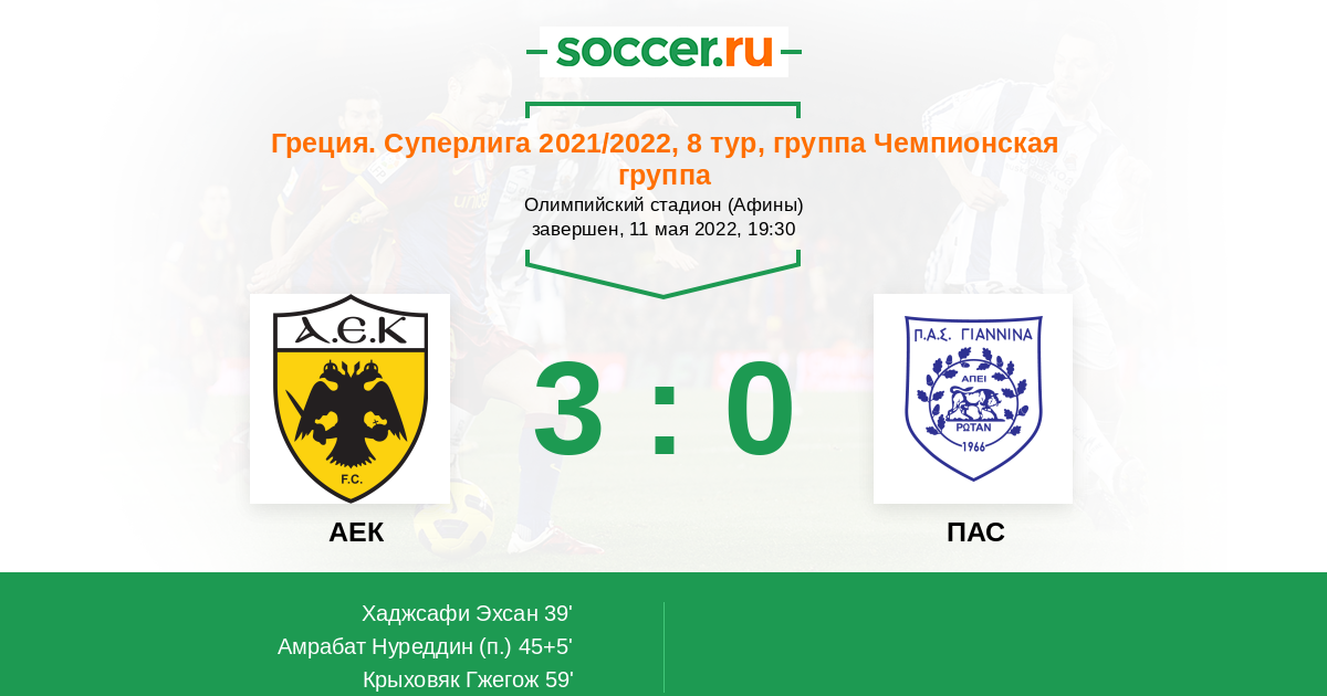 Протокол матча АЕК против ПАС