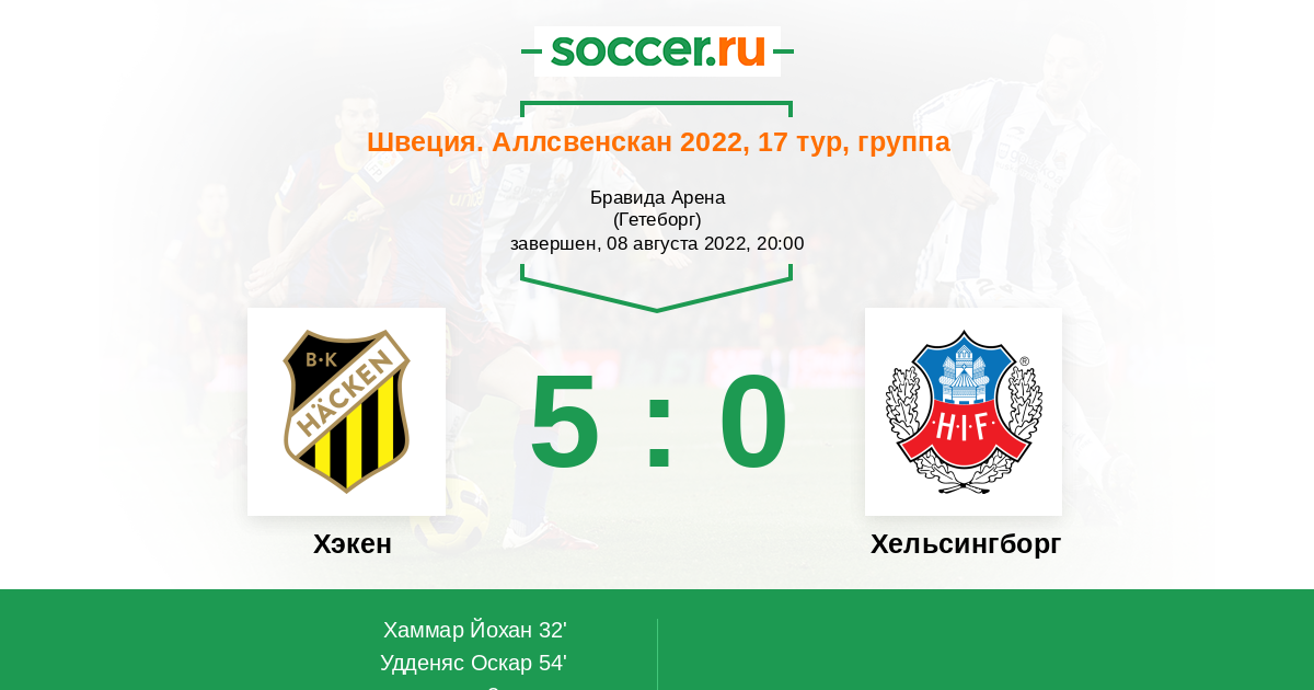 32' (1:0) Хаммар Йохан (3) (Густафссон Самуэль (11))