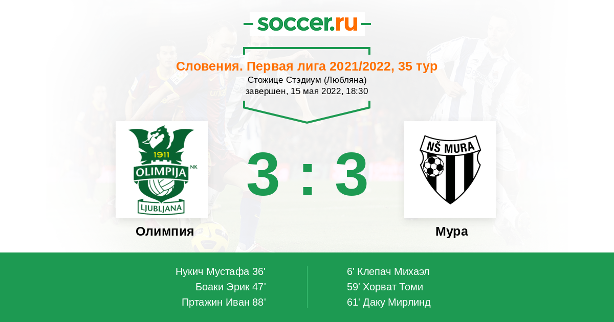 Протокол матча Олимпия против Мура