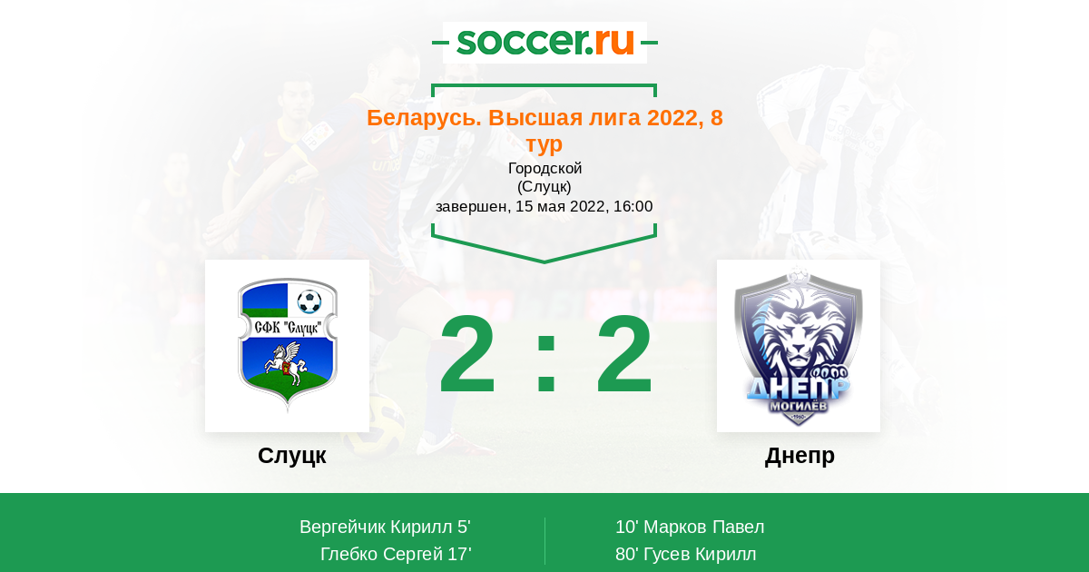 Протокол матча Слуцк против Днепр