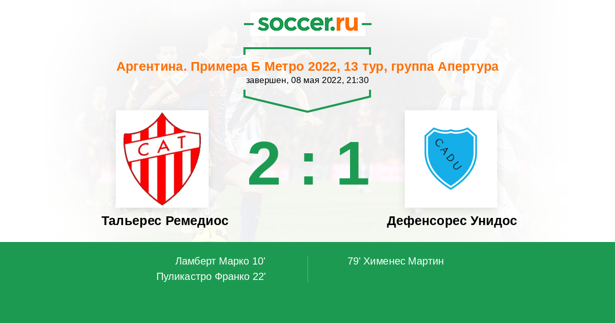 Протокол матча Тальерес Ремедиос против Дефенсорес Унидос