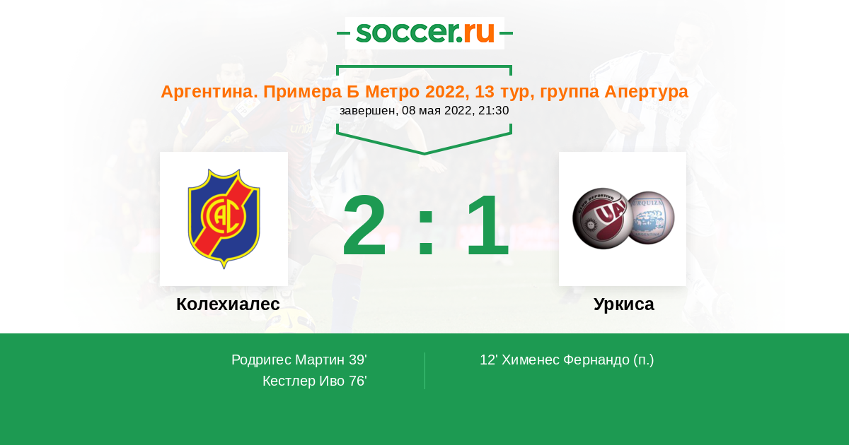 Протокол матча Колехиалес против Уркиса
