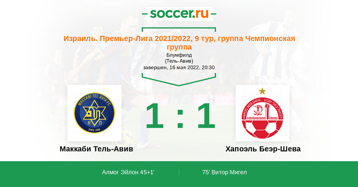 Протокол матча Маккаби Тель-Авив против Хапоэль Беэр-Шева