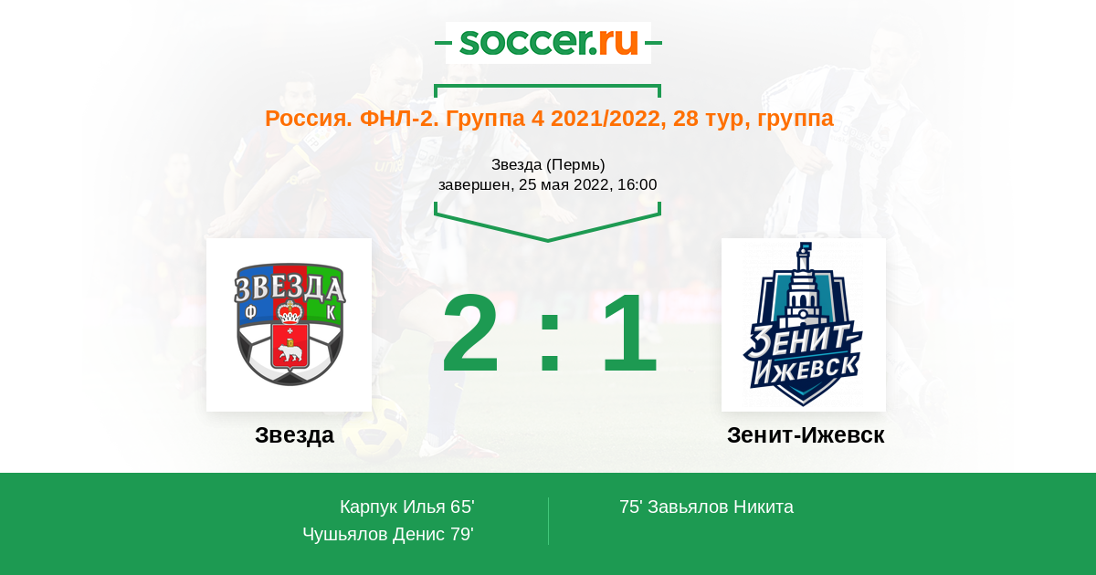 Протокол матча Звезда против Зенит-Ижевск