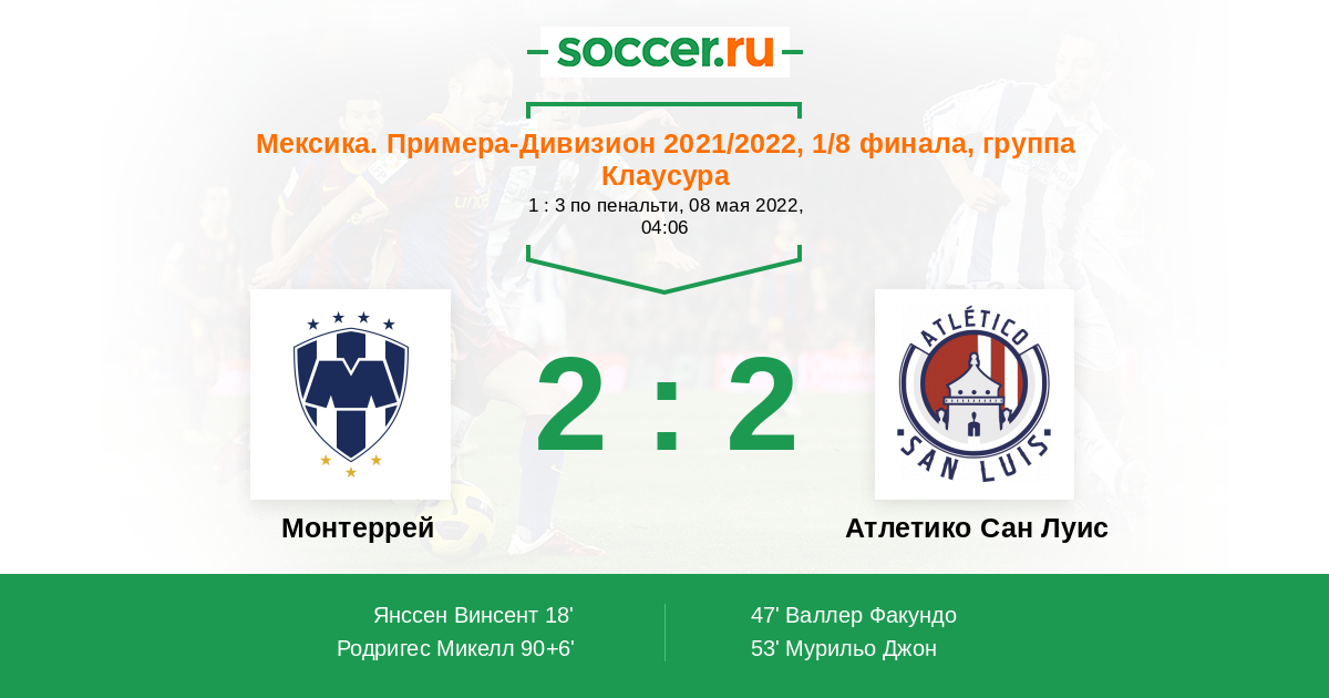 Протокол матча Монтеррей против Атлетико Сан Луис