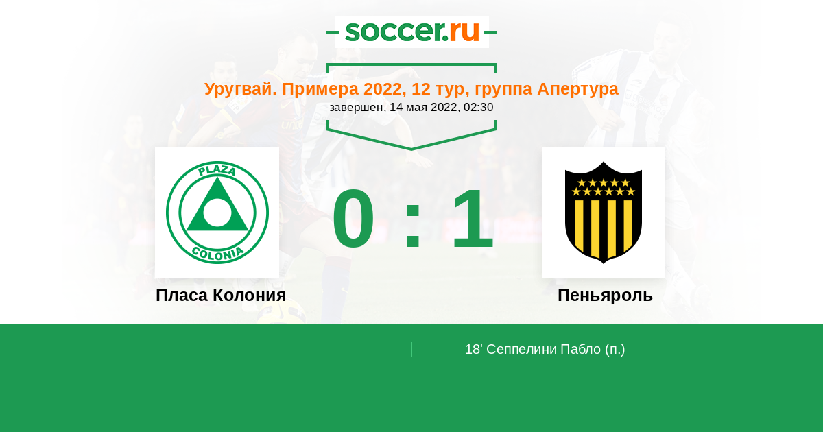 Протокол матча Пласа Колония против Пеньяроль