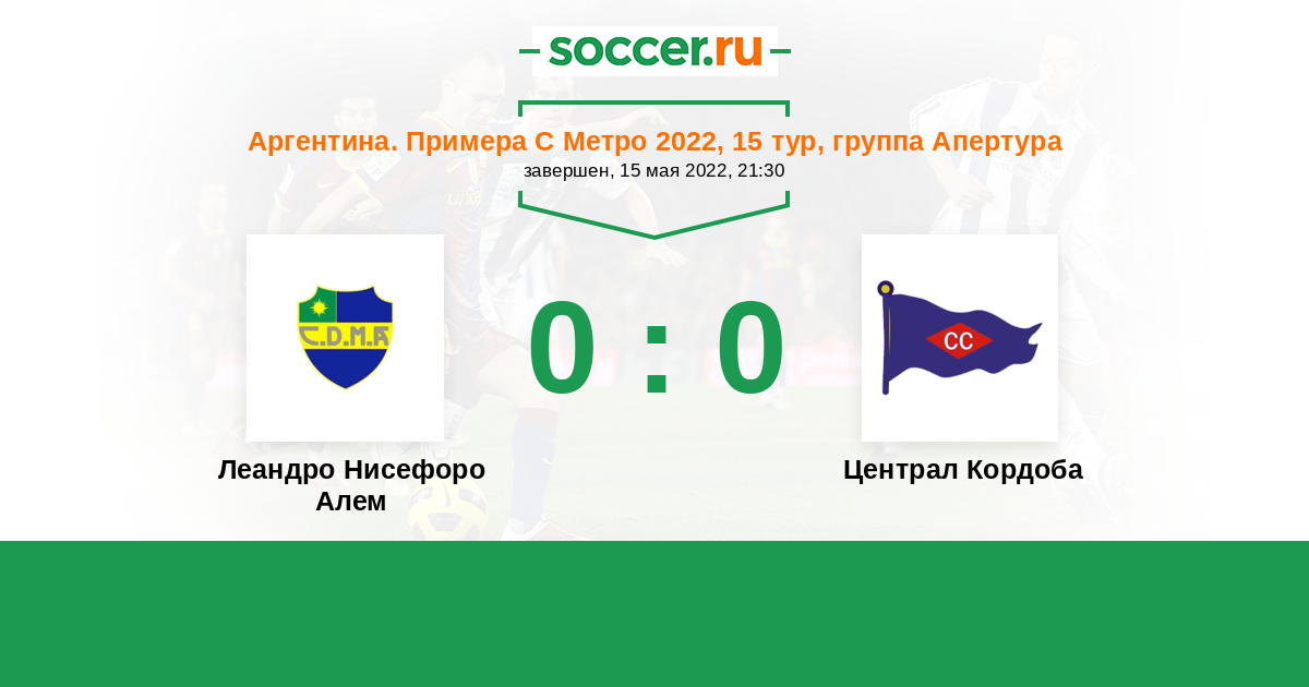 История матча Леандро Нисефоро Алем против Централ Кордоба