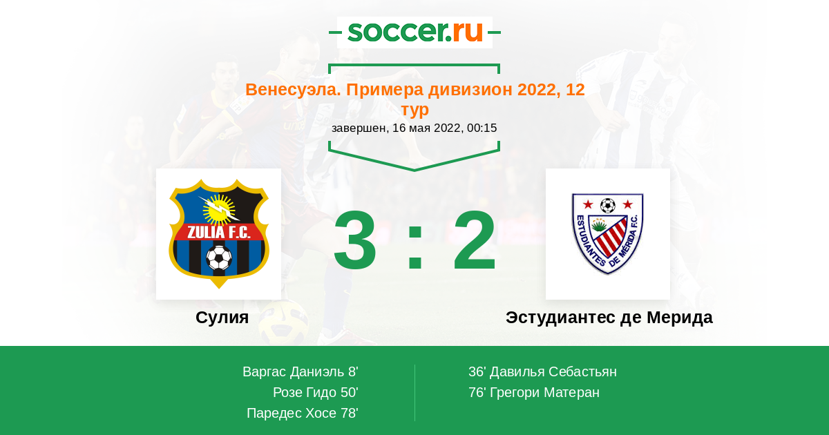 Протокол матча Сулия против Эстудиантес Мерида
