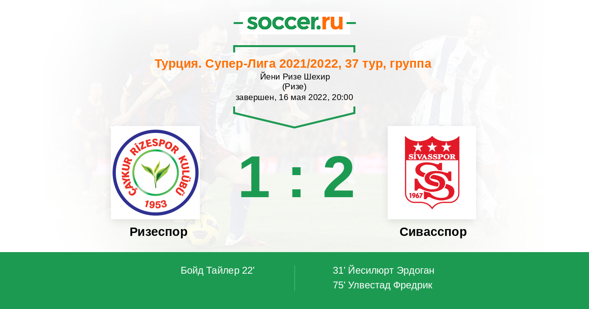 Протокол матча Ризеспор против Сивасспор