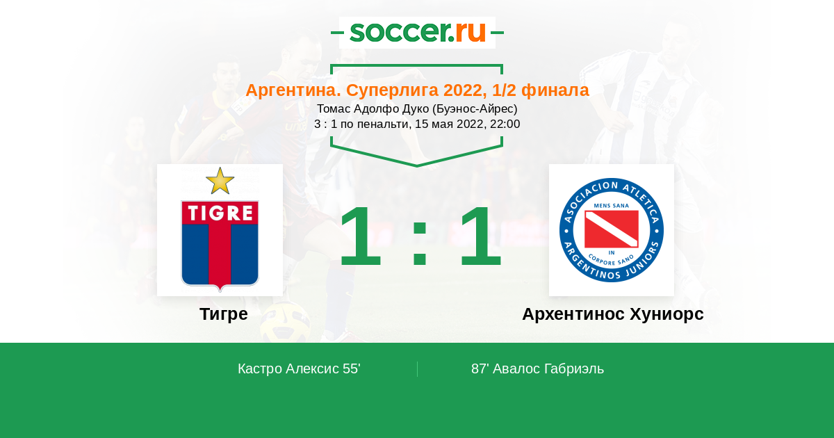 Протокол матча Тигре против Архентинос Хуниорс