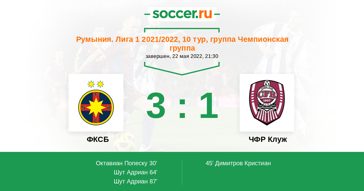 30' (1:0) Октавиан Попеску (9) (Олару Дариуш (27))