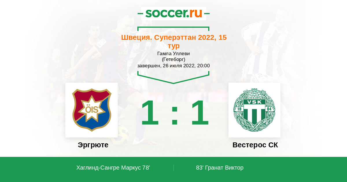 78' (1:0) Хаглинд-Сангре Маркус (22)