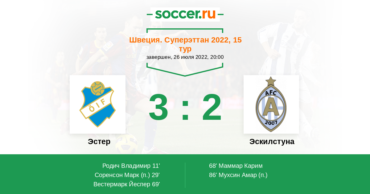 Протокол матча Эстер против Эскилстуна