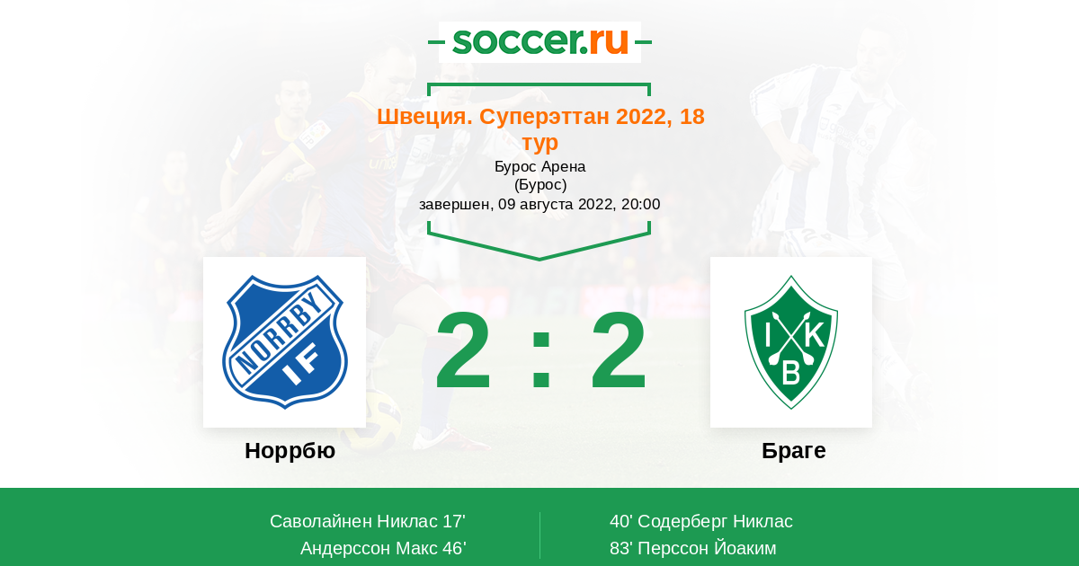 Протокол матча Норрбю против Браге