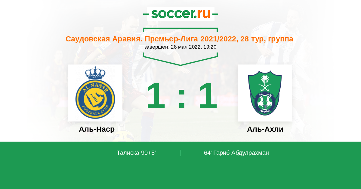 Протокол матча Аль-Наср против Аль-Ахли