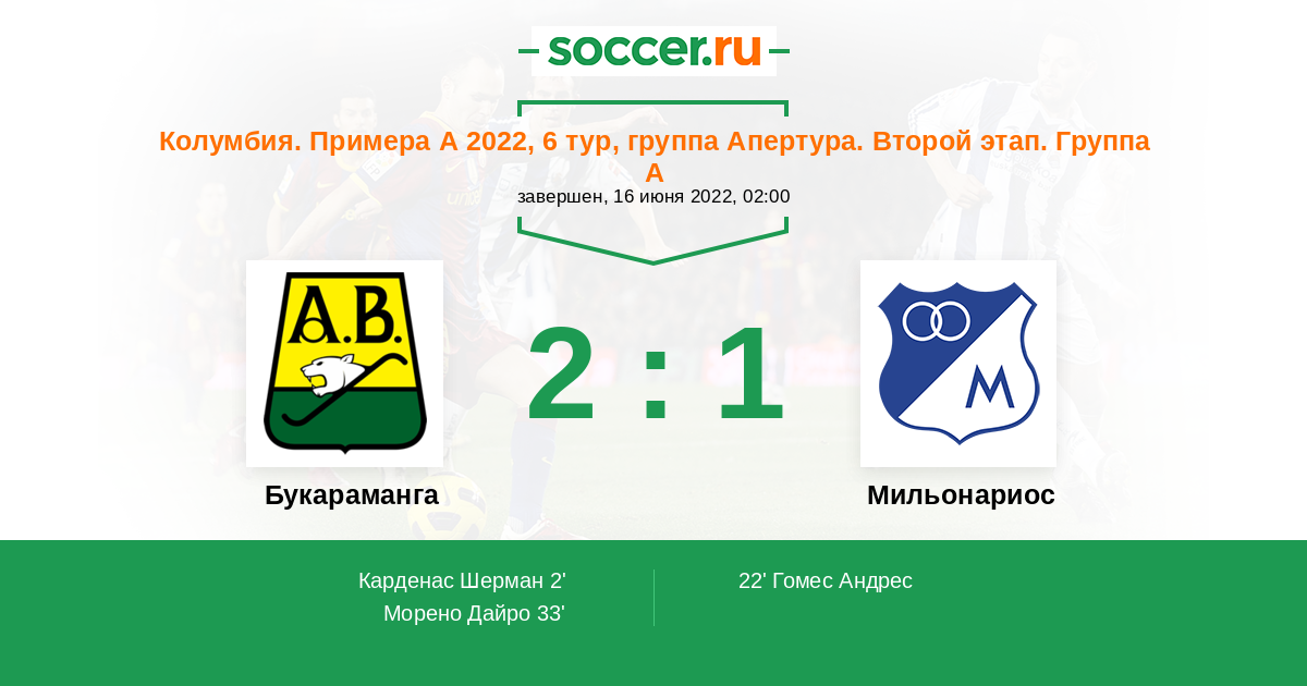 Протокол матча Букараманга против Мильонариос
