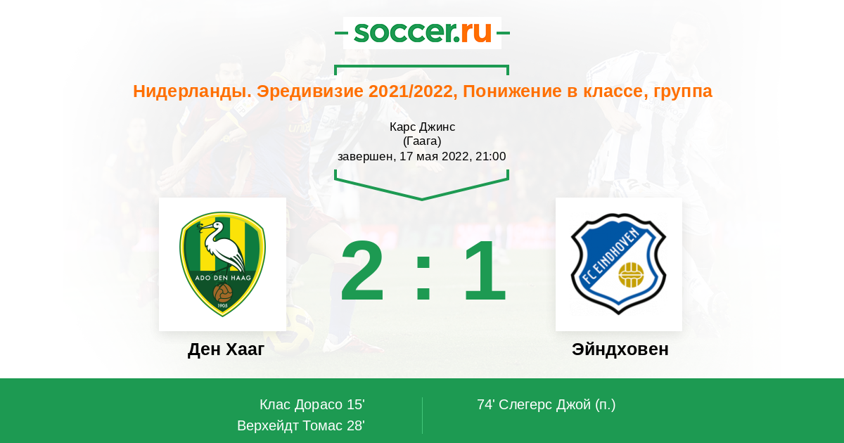 Протокол матча Ден Хааг против Эйндховен