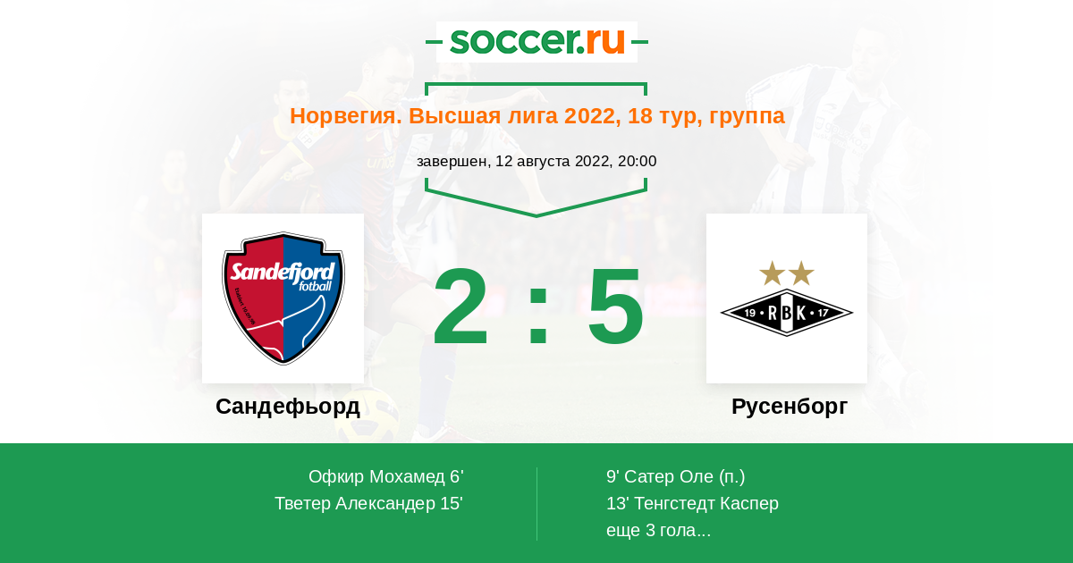 Протокол матча Сандефьорд против Русенборг