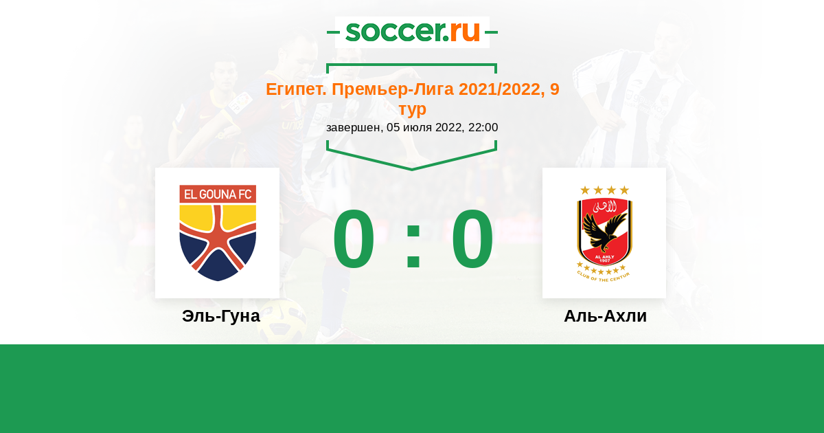 Протокол матча Эль-Гуна против Аль-Ахли
