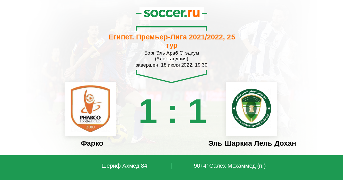 Протокол матча Фарко против Эль Шаркиа Лель Дохан