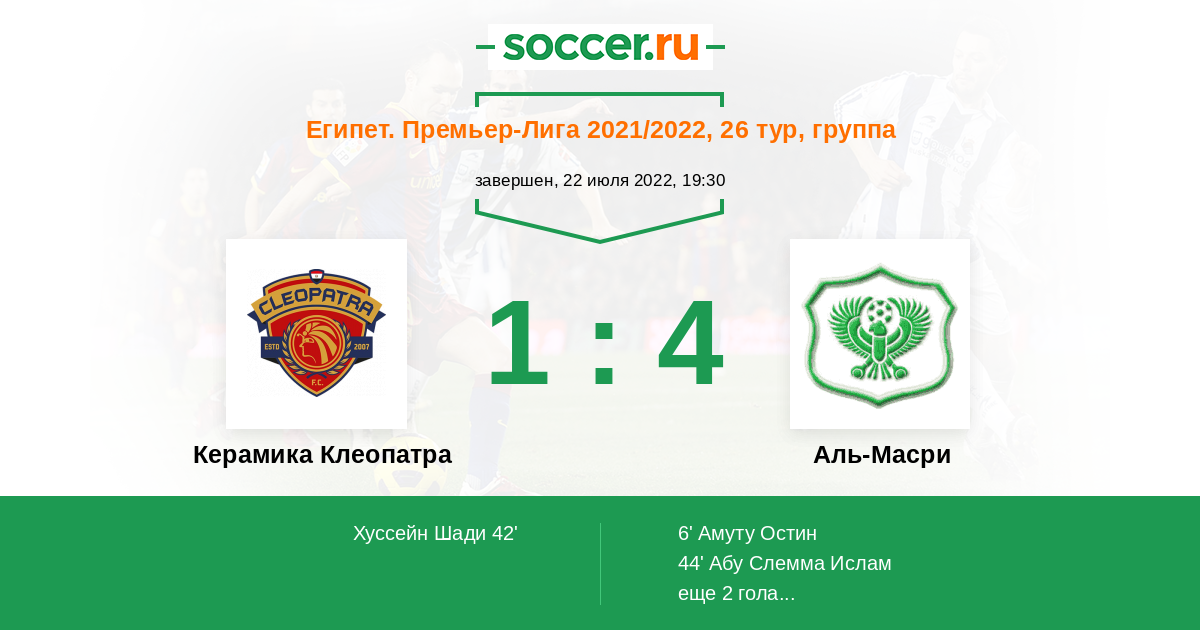 Протокол матча Керамика Клеопатра против Аль-Масри