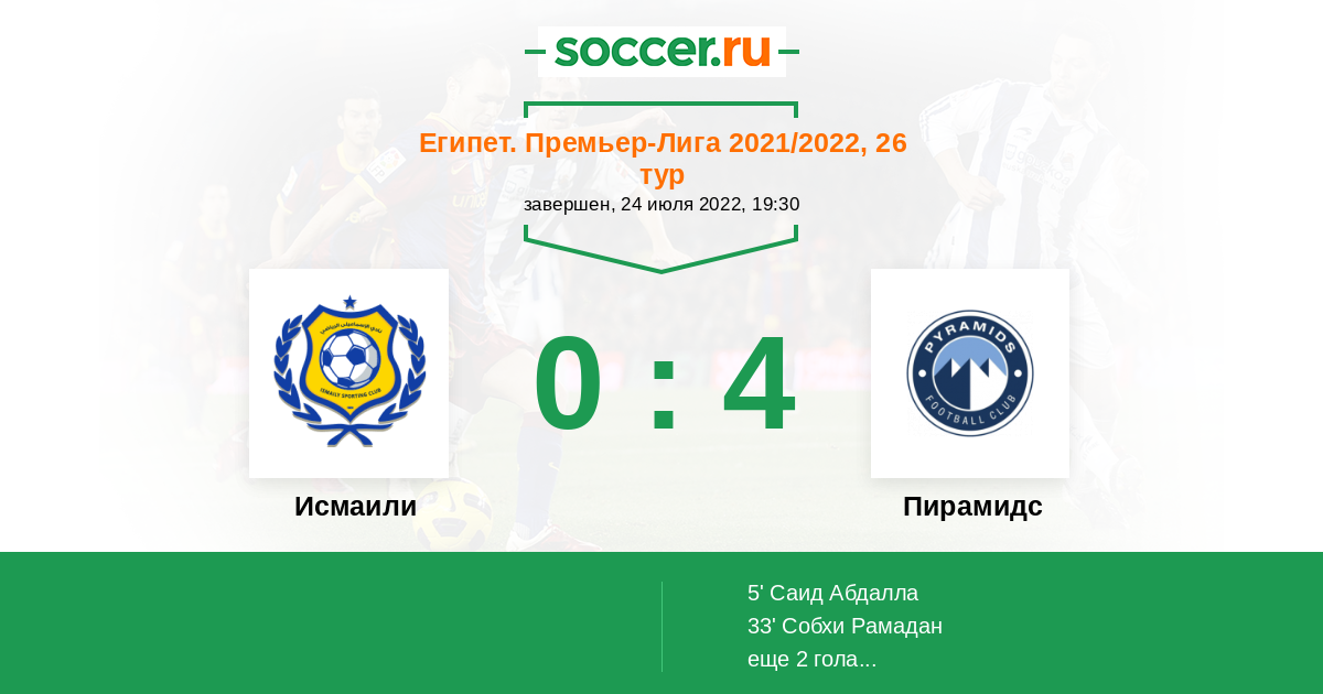 5' (0:1) Саид Абдалла (19) (Собхи Рамадан (10))