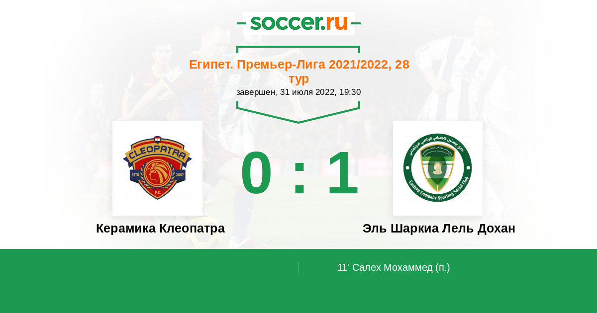 Протокол матча Керамика Клеопатра против Эль Шаркиа Лель Дохан