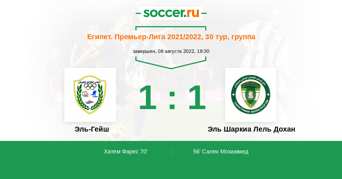 Протокол матча Эль-Гейш против Эль Шаркиа Лель Дохан